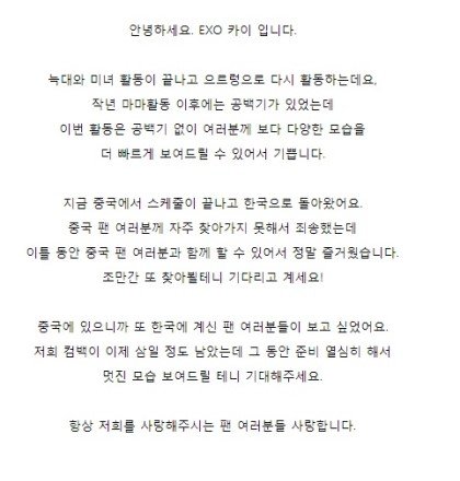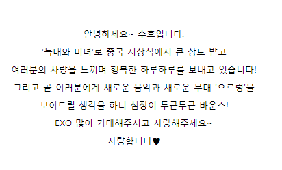 엑소 수호,카이,백현,시우민 공홈 업뎃
