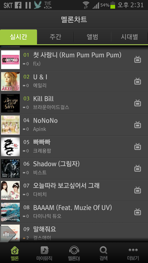 타팬 이지만 그래도 인피니트나 이런 가수들 노래도 좋아하는데 싹다 밀렸네;ㅎㄷㄷ