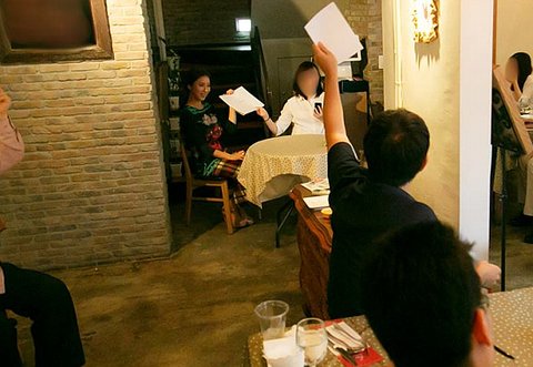 팬들과 함께 하는 자리에서 좋은 표정 감추질 못하는 세경씨