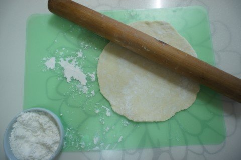 밀어서 반죽피를 얇게 밀어줍니다.