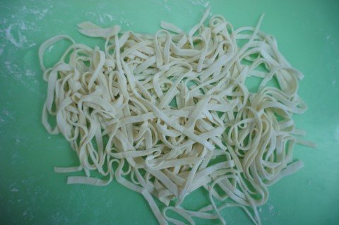 (면들이 달라붙지 않도록 밀가루를 사이 사이 뿌려 줍니다.)