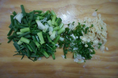 8. 쪽파(한줌)도 썰고 마늘은 9개 정도 미리 다져놓습니다.