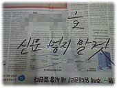 아파트에 배달할 신문을 챙기기 위해 현관 출입문 앞 도착지에 갔다. 그런데 가지런히 놓여있는 신문들 위로 웬 글씨가 적힌 신문지가 붙어있는 것이 아닌가.
