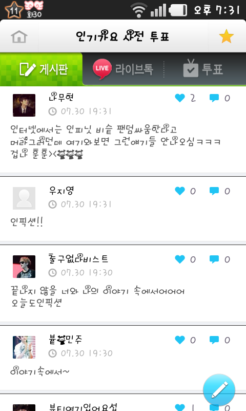 이거보시면 사이가좋아요...여기서 우리 뷰티는 인피니트가 1위하기위해서 투표를하고 다행히 인피니트는1위를했어요!! 그리고 오늘!! 뷰티와 인슾은