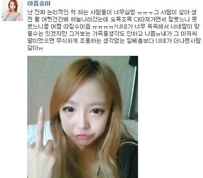 얼짱이고 뭐고 개념을 챙겨야지개념팔은 돈으로 성형했나