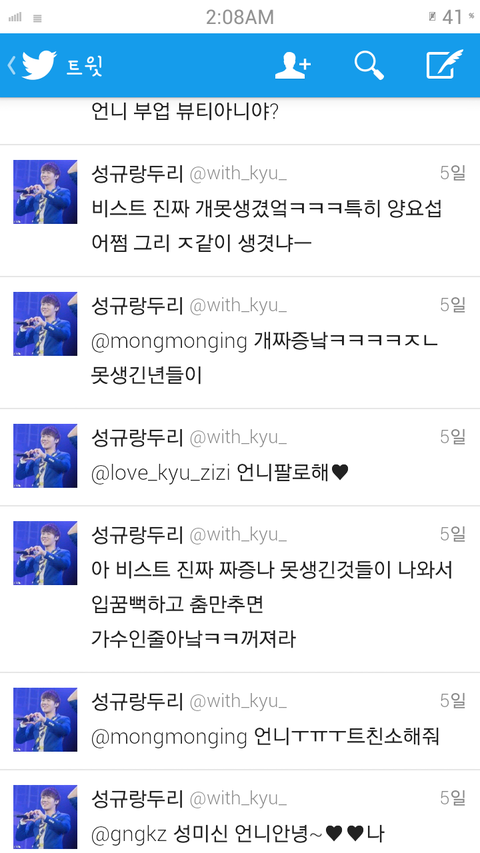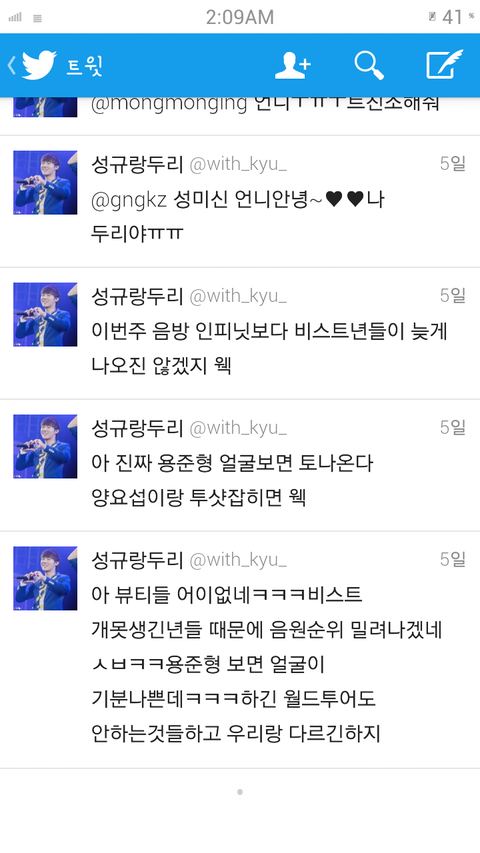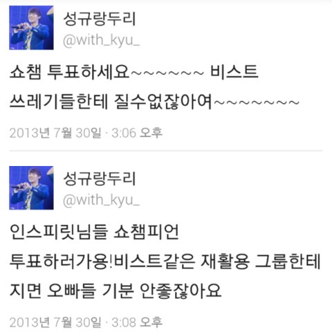 인피니트랑비스트는친해서 잘지내시는데 팬들간에사이안좋아져서 괜히가수분들끼리도 않좋아지는거 싫은데