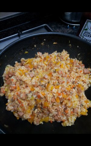 큐브참치+감자+카레가루 넣고 볶음과