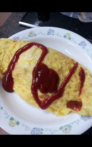 오므라이스... 케찹으로 하트 그리려다 망침 ㅜ.ㅜ