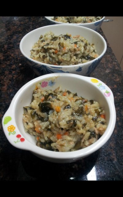불린 미역과 참치를 넣어 만든 참치죽