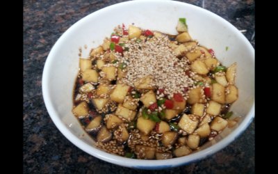간장+식초+참기름에 잘게 썬 사과를 넣어만든 약념간장