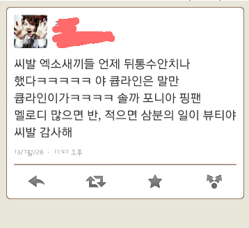 ㅋㅋ지들 스밍? 투표? 암튼ㅋㅋ 안해줬다고 말하는 꼬라지 보소 맨날 말로만 큡라 큡라 하지말고 먼저 예의 지켜라ㅉ