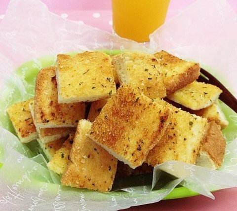 식빵에 꿀바르고 녹인 버터+간마늘+파슬리가루소스를 바른 후 오븐에 구우면 끝.