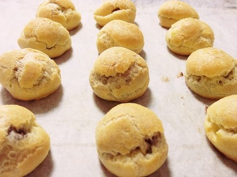 오븐에 굽는 중 문을 열면 부풀었던 슈가 삐시시식 꺼져버림.