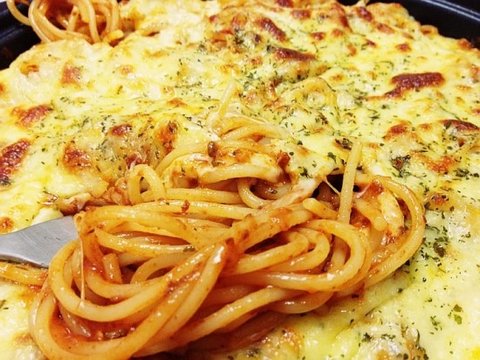 파스타면을 삶아 미트소스에 볶은 후 위에 피자치즈뿌리고 오븐에 구운거..
