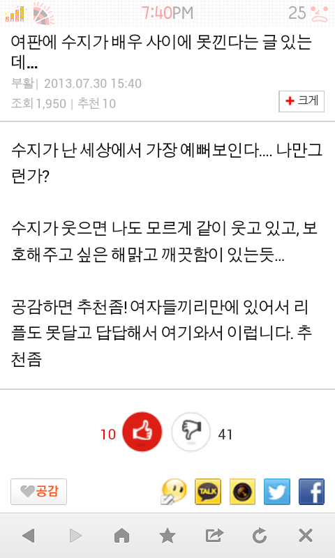 이거보면 남자들이 수지를 완전 여신급클래스로 생각하는것 같은데