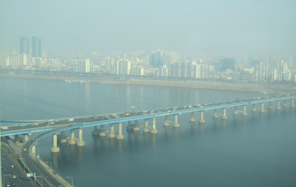 불을 켜지 않아도 채광이 좋아 아침 햇살이 환하게 비추는 강남에 위치한 한강조망권 고층 아파트.