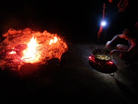 밤에 우리가 캐온(?) 장작으로 정체 불명의 요리를 만들어 먹습니다. 지금 독일 여자애가 요리를 젓고 있는데 뜨거우니깐 번갈아 가면서 젓습니다. 저 정체불명의 요리는 각국에서 모인 여행자 누구도 정체를 알지 못했고, 아직까지도 미스터리 입니다 ㅡㅡ;;;