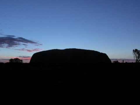 일출전에 본 울룰루 입니다. 빛이 없으니 검정색으로 보입니다. 물론 다른바위라도 그럴듯...ㅋ