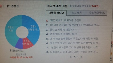 제가 여행판을 많이 읽어서 네이트 톡톡 추천이 여행판으로 뜨는데,