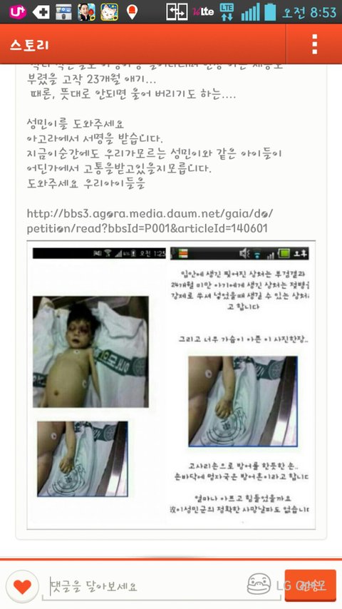 방탈 죄송합니다..마음이..아퍼서..성민이에 대해 모르시는분 들이 많아서 다시 글 퍼왔습니다. 대한민국에서 일어난 너무도 비통하고 원통한 가엾은 23개월 여린 천사의 이야기입니다
