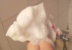 천연비누를 물 묻혀서 거품망에 문질문질~해주면
