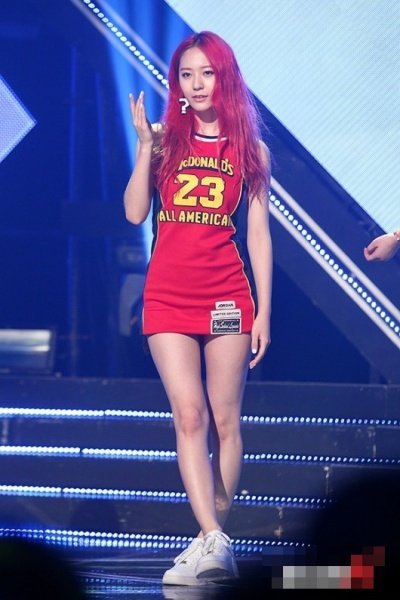 어제 한 음악방송 컴백무대에서 대다난 미니 원피스를 입은 크리스탈