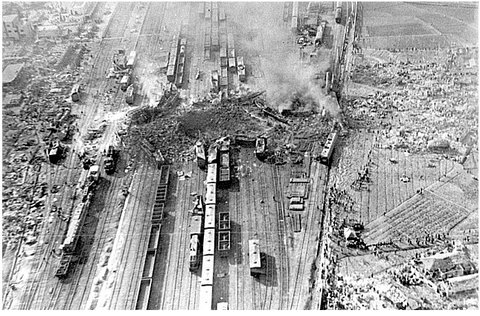 역 구내에 있던 객차·화물열차·기관차 등 30여 량 남짓이 파손되었고