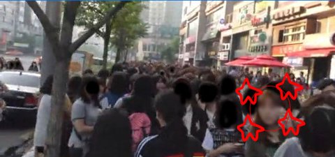 허나 별표 친 엑소 팬이 씨엘 팬을 때리기위해 손을 준비합니다