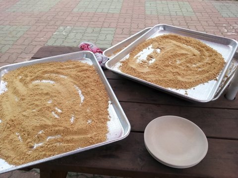 떡고물가루를 준비하고 !!떡방아찐 떡을 묻혀줍니다!!! 아! 정말