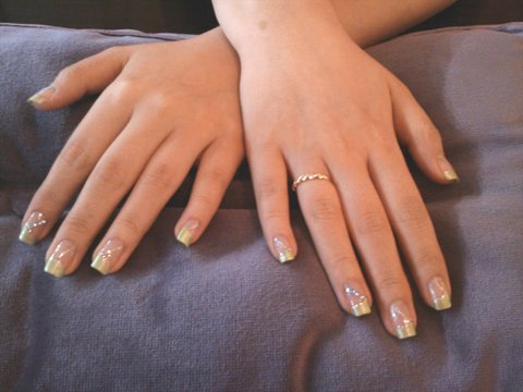 프렌치 네일에 글리터로 라인 넣어주기.. 한손에 하나씩은 글리터가 아닌 스톤으로 라인을..