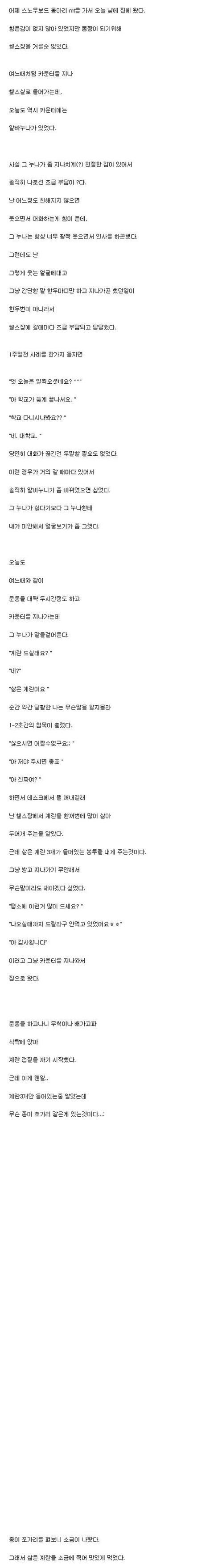 "엇 오늘은 일찍오셨네요??^^ "아 ~ 학교가 늦게 끝나서요." 이건 뭔ㄱ ㅐ 소리야 일찍오셨네요 냐니까 학교가 늦게 끝났어? 학교가 늦게 끝났는데 어떻게 일찍 오는데? 시간을지배하는자니?