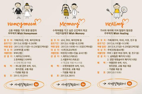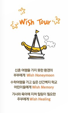 마지막으로 이웃과 가족을 위한 행복 여행을 선물하는 프로젝트인 위시투어까지 총 3가지