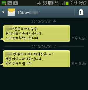 [판매자께서 1+1제품이 아니라고합니다. 확인부탁드립니다.]라는 문자를 보내고 연락이 없더군요