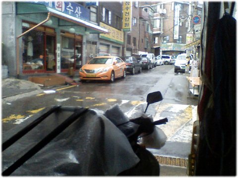 마침 근처를 지나던 Y (어느새 우비를 입고, 코팅된 신문에, 비닐봉투까지 완벽하게 갖추고 있었다. 헐!..)