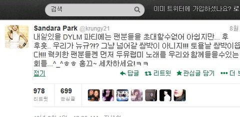 그런데 산다라박이 트위터에 투애니원 신곡 듣고 싶으신분들 오라고 트위터를 남긴거 봤어요?