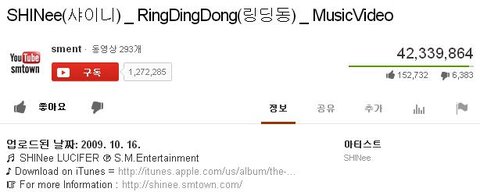 샤이니 링딩동 유툽조횟수 4200만 넘었다