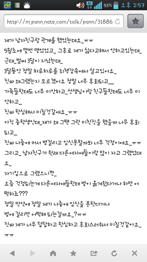 어느몸팔던 청소년의 후회