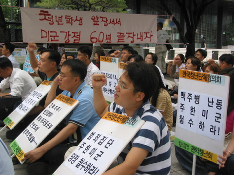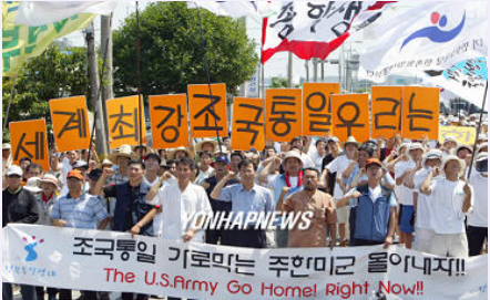 평화를 원한다. 전쟁의 원흉인 미군들을 철수하라고 데모를