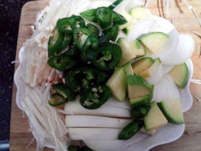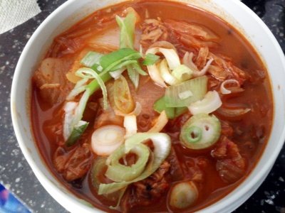 여러 야채 썰여넣고 끓인 돼지고기김치찌개
