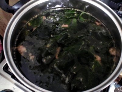 전날 밤에 몰래 장을 봐와서 미역국을 끓이기 시작했슴