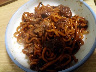 미역국에 쓰고 남은 소고기가 조금있기레 짜파게티에 넣어먹었슴