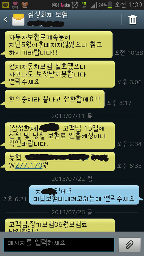 그런데 칠월초쯤에 설계사분이 전화오셔서 보험비 삼개월 분이 미납됫다고하며 27만원을 입금 시키라고 하기에