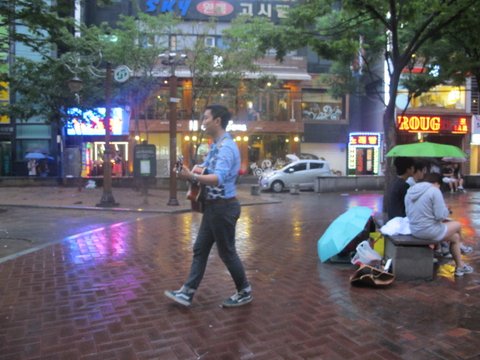 비도오는데 우산도 안쓰고 기타치고 다니는거보고