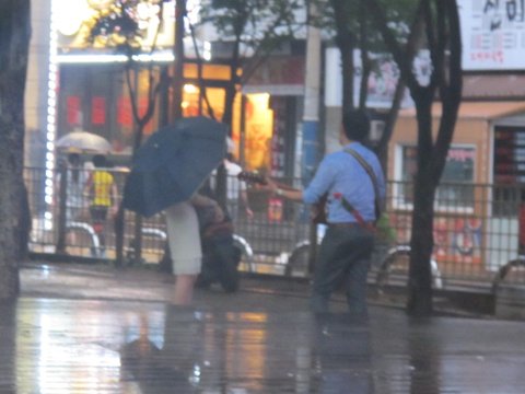 근데 비가오는데 사람들이 젖은 벤치에 다들 앉아있는거임?