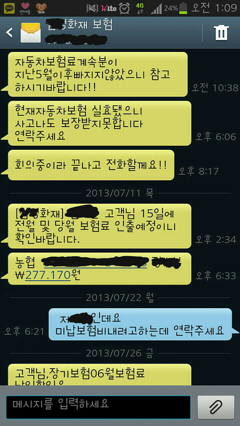 한달에 9만원이라며 입금하라던것과 그리고 6월분 납입확인바란다는 문자들도 다 납득이되지않는데