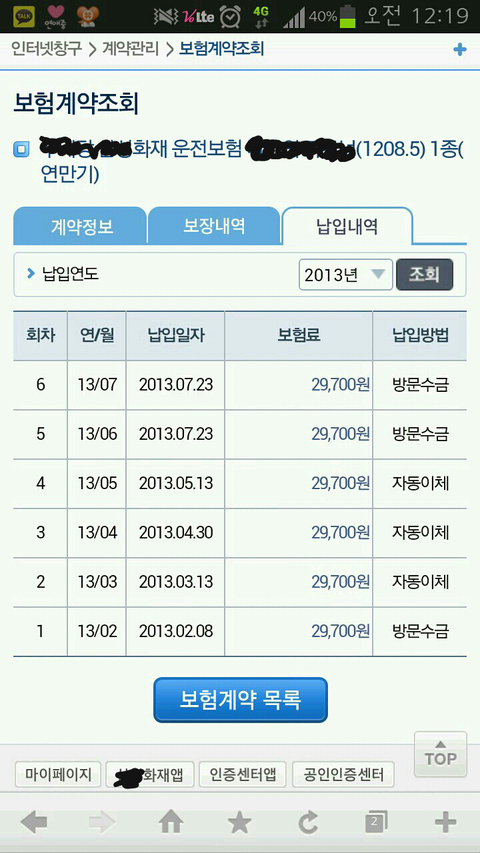 매달 보험료가 29700원씩 납입한거로 되있었고