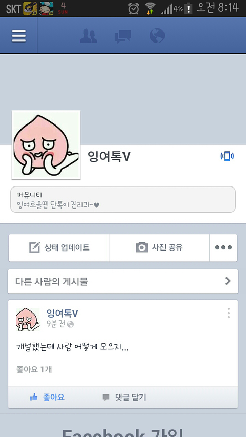 페이스북에 단톡만을 위해 태어난 페이지를 개설했습니다.