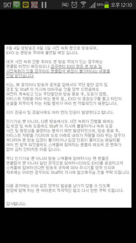 공지보면 이번 8월 1일 인기가요 사녹 중에 발생한 분란같은 거에 대한 언급으로는