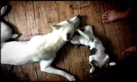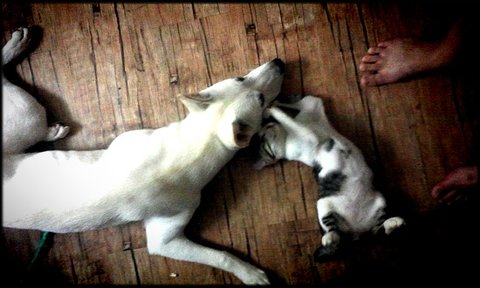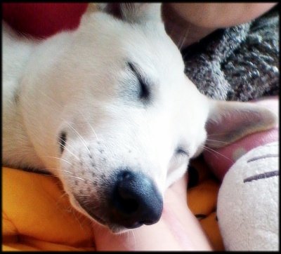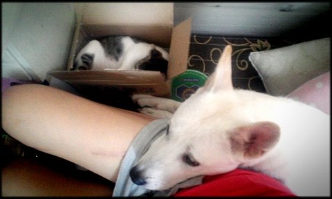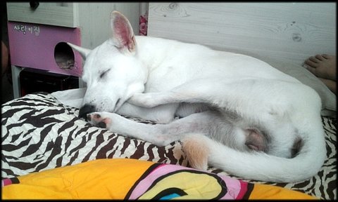 같이 끌어안고 자면 희망이는 정말 몸이 커서 사람 끌어안고 자는것 같답니다 ㅎㅎ