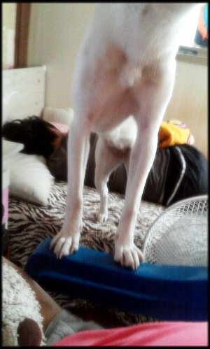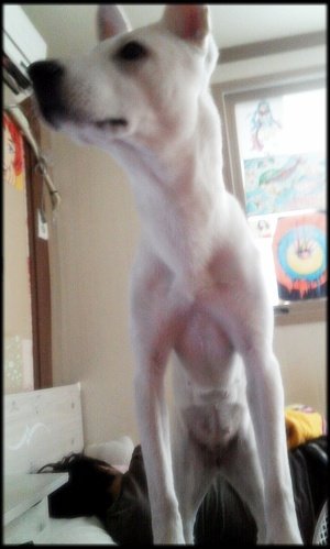 내가 컴퓨터 하면 희망이는 이렇게 침대에 올라앉아서는 나보고 놀아달라고 낑낑거림